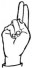 На ћирилици написано КОСТА ИГЊАТИЋ састоји се из 12 слова [?]. Исписано ћириличном једноручном азбуком за глувонеме:
